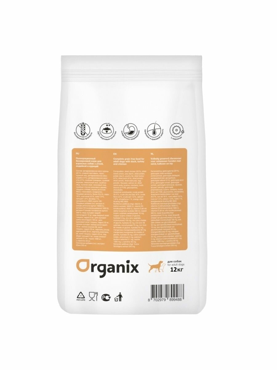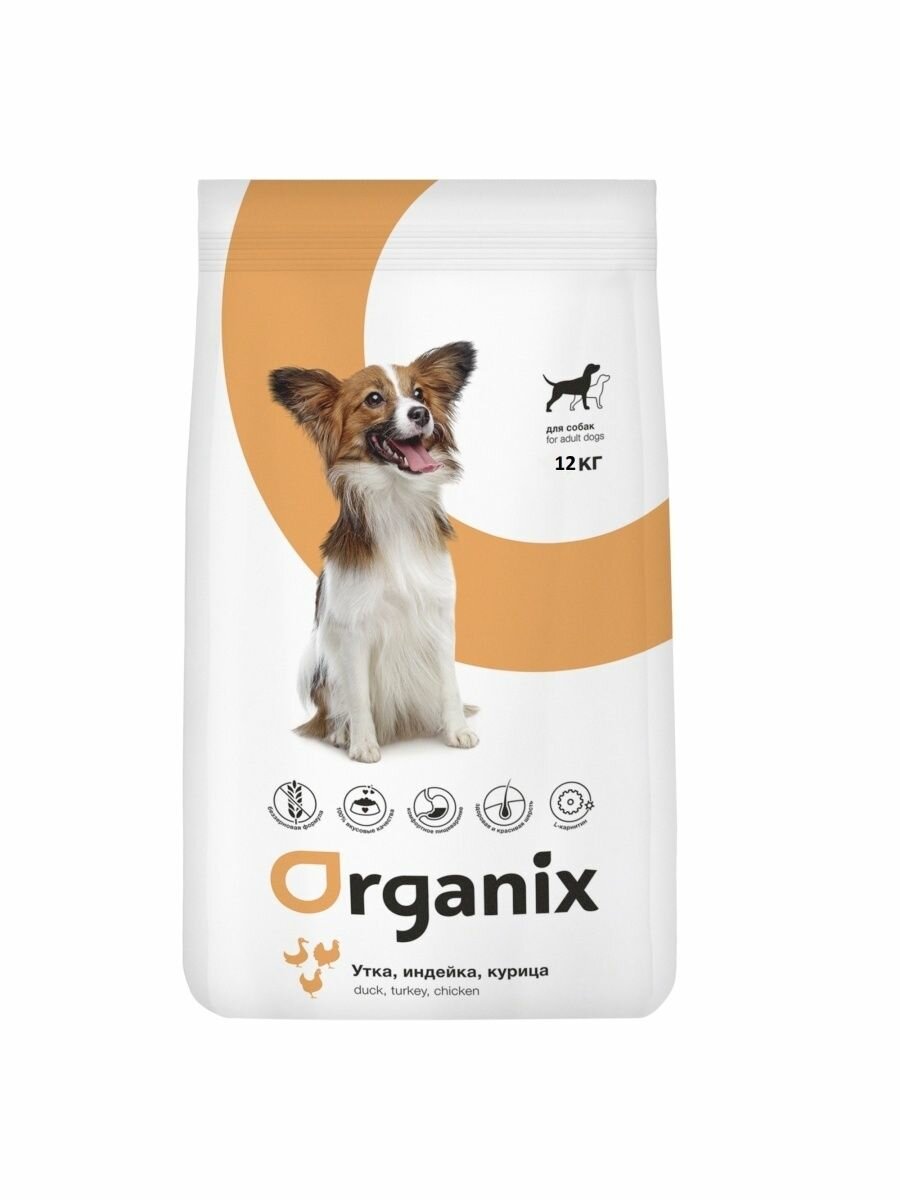 Сухой корм для собак ORGANIX беззерновой, утка, индейка, курица 1 уп. х 1 шт. х 12 кг