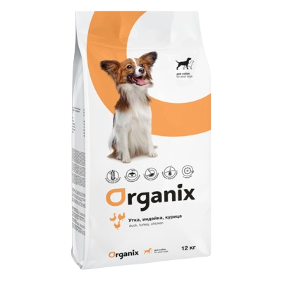 Корм Organix Adult Duck, Turkey & Chicken для собак, с уткой, индейкой и курицей, 12 кг