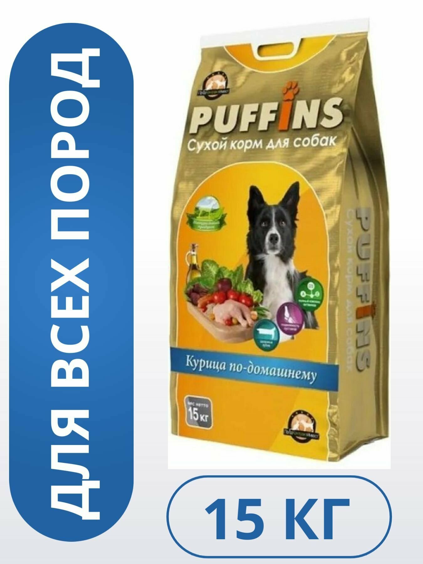 PUFFINS 15кг Корм сухой для собак курица по-домашнему