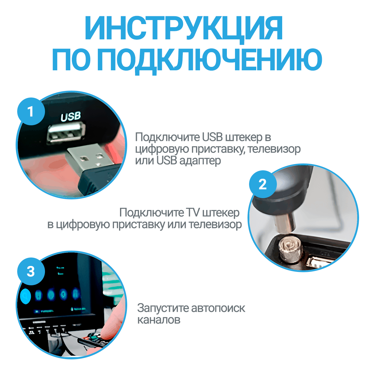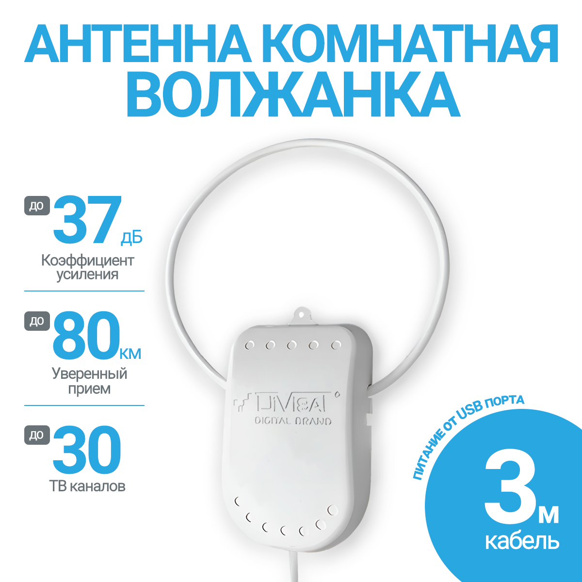 Антенна комнатная, Активная, для Цифрового ТВ, Волжанка, USB, 3м, с присоской