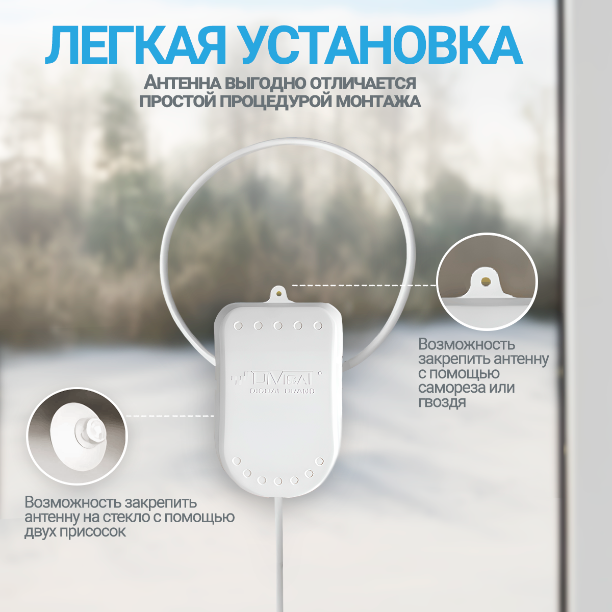 Антенна активная DVB-T2 комнатная "Волжанка" с присоской (3 метра)