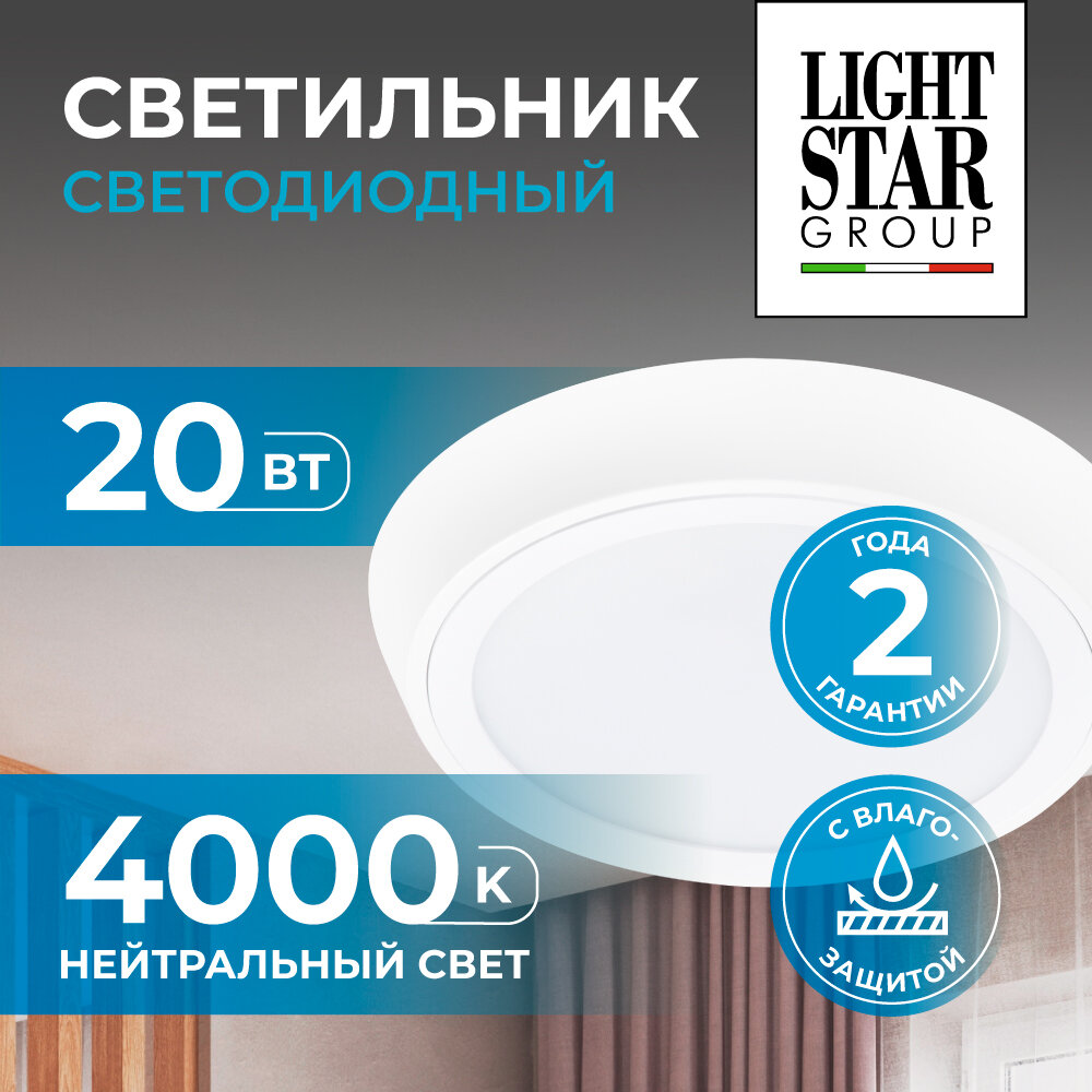 Потолочный светильник Lightstar Urbano 216904, 20 Вт, кол-во ламп: 1 шт., цвет: белый