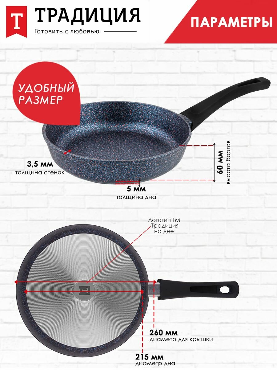 СохранитьСковорода литая традиция ТС2261 26 см, темный мрамор интересное: