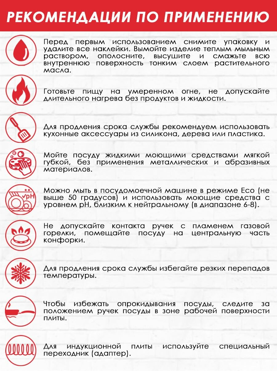 | Плюсы: | Выглядит хорошо, толстые стенки и дно литой сковороды внушают доверие. Ручка софттач. Большой диаметр дна внутри, Хорошая цена за литую сковороду . |