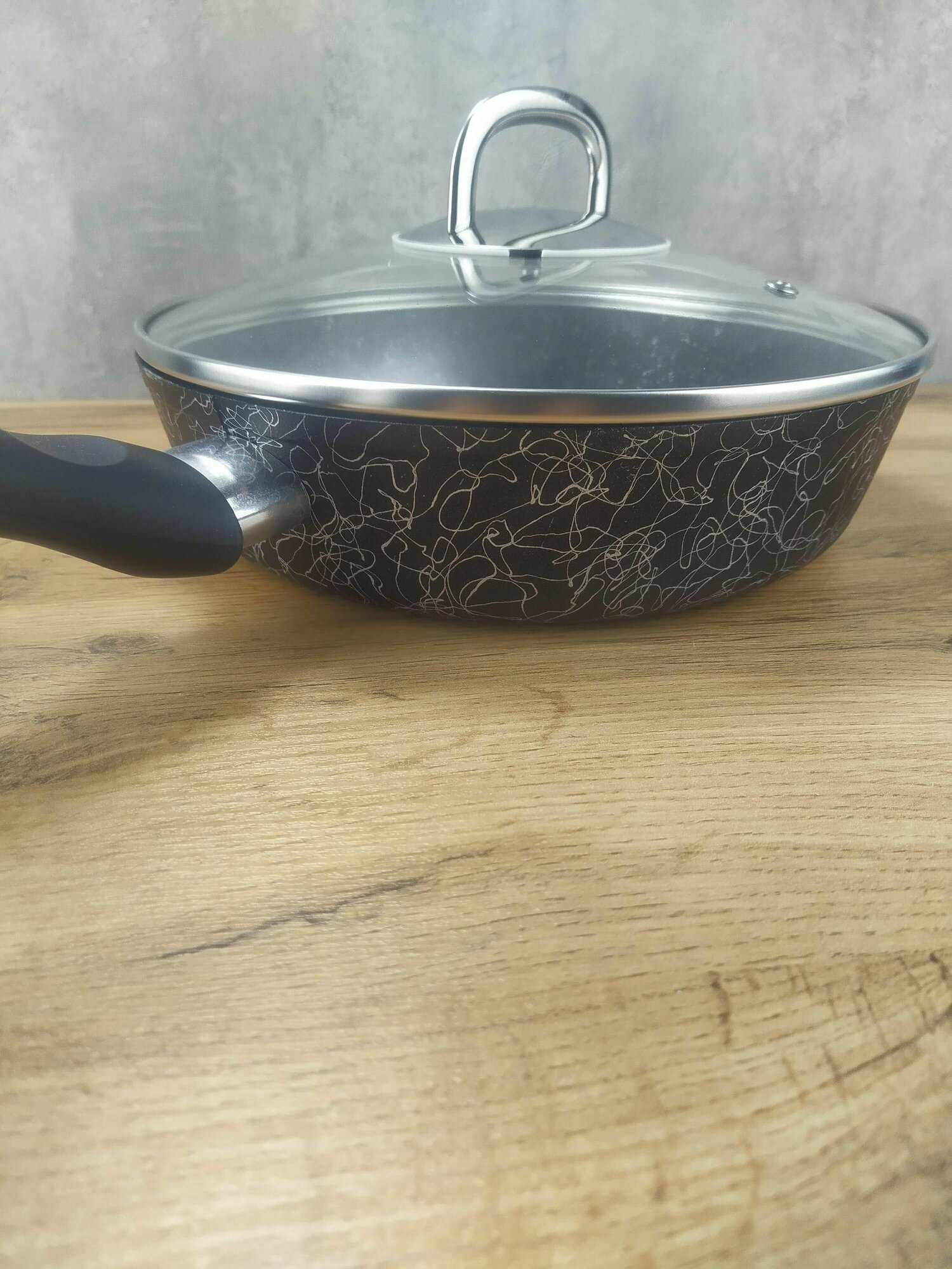 | Отзыв: | Суперская сковорода. Вместительная, ручка не снимается, как и хотела. Покрытие как на картинке. Пока не пользовалась, но думаю будет огонь. Крышку купила отдельно. Подошла идеально |