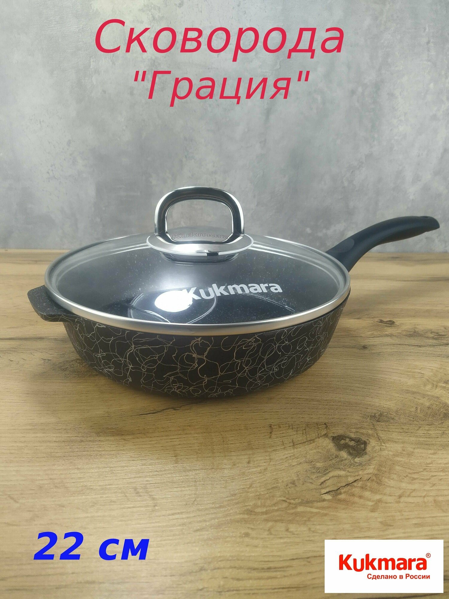 СохранитьСковорода Kukmara Грация антиприграрная литая 22см, стеклянная крышка черный/серебро (сгчс221а) . интересное: