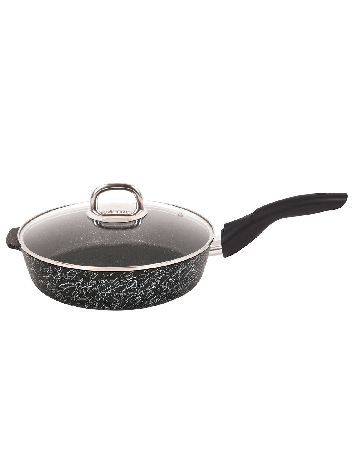 Сковорода Kukmara Грация антиприграрная литая 26см, стеклянная крышка черный/серебро (сгчс261а) .