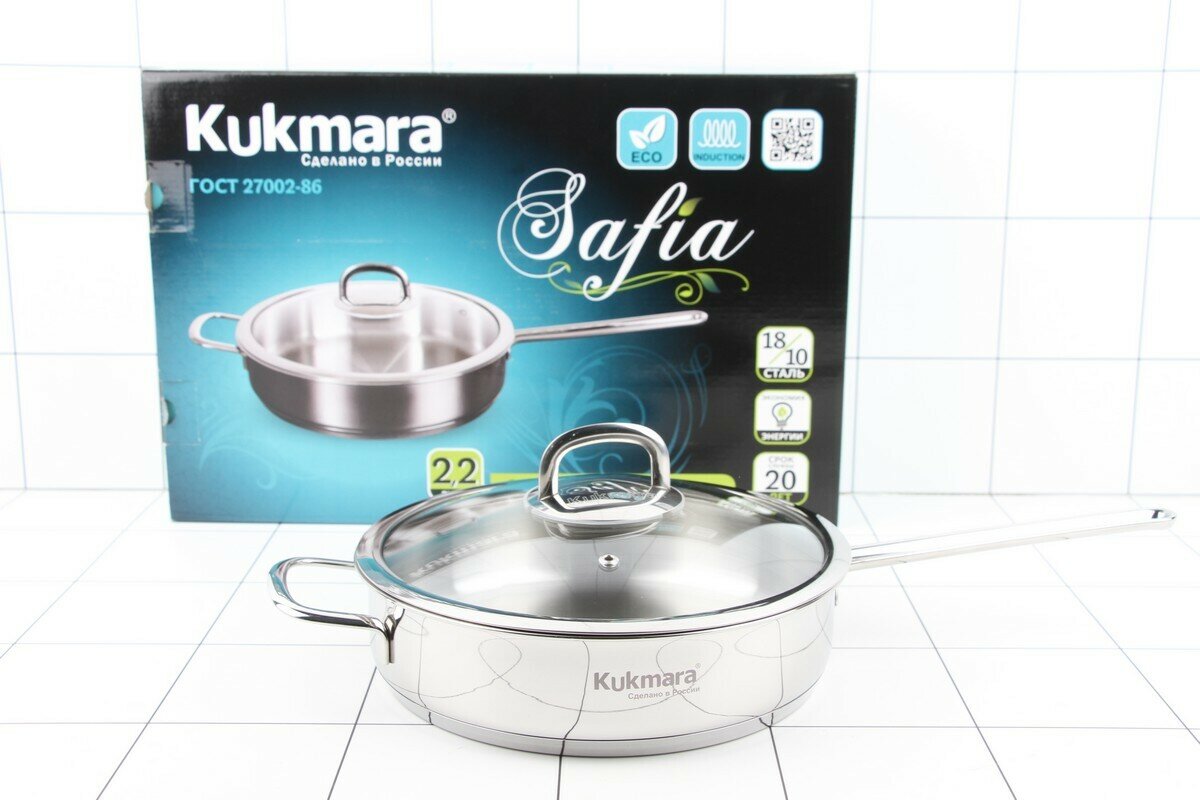 Сковорода Kukmara из нержавеющей стали 22 см со стеклянной крышкой, линия "Safia"