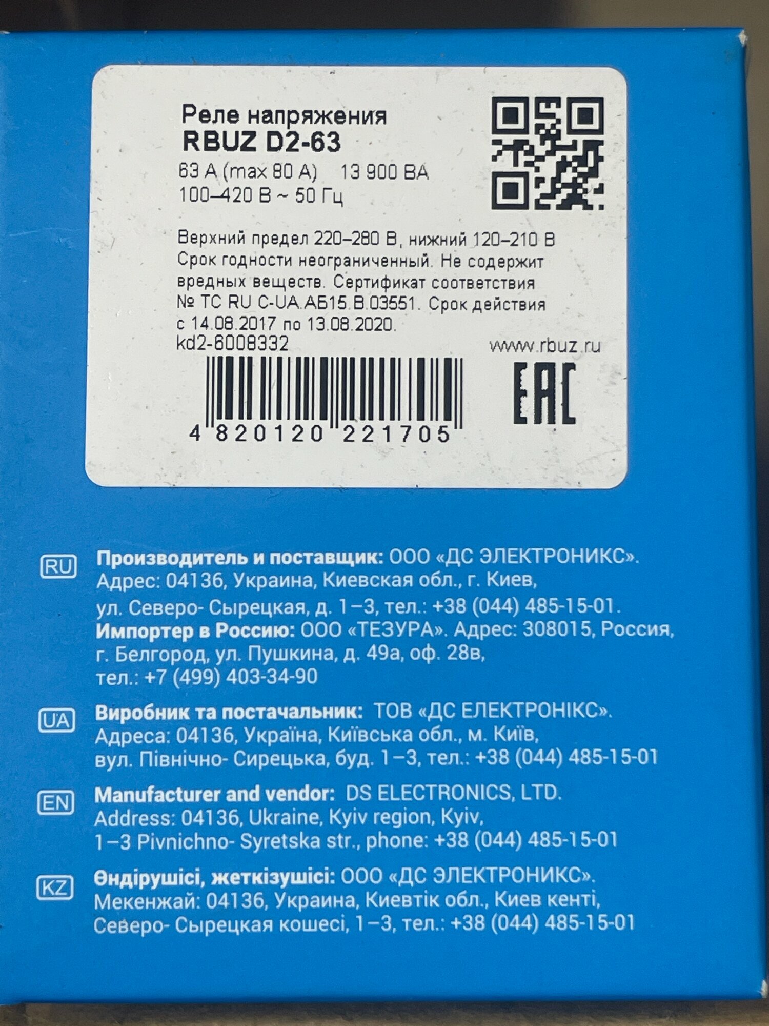 Ниже Вы можете прочитать отзывы на Реле контроля напряжения RBUZ D2-63 1 шт. 63 А 230 В, ознакомится с подробными характеристиками, посмотреть интересные обзоры и фотографии на Реле контроля напряжения RBUZ D2-63 1 шт. 63 А 230 В.