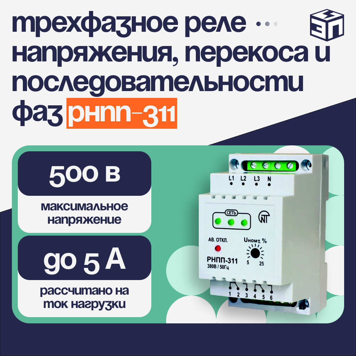Реле напряжения, перекоса и последовательности фаз РНПП-311