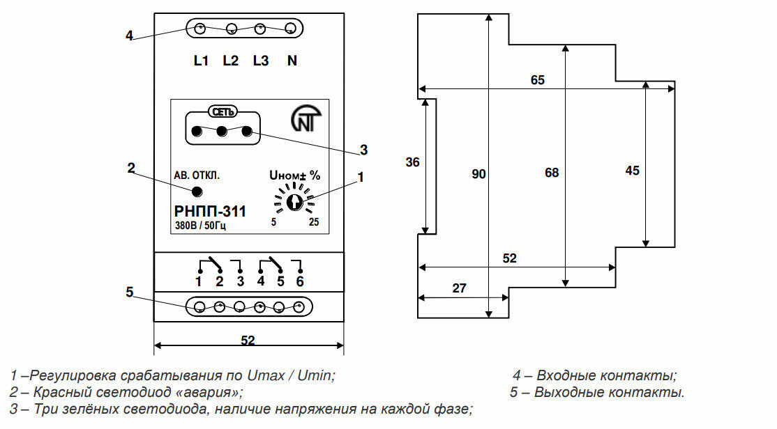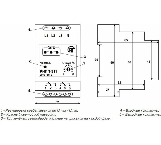 Реле напряжения РНПП-311 трехфазное нерегулируемое DIN (ЕЛ-12) | код 3425600311 | Новатек-Электро ( 1шт. )