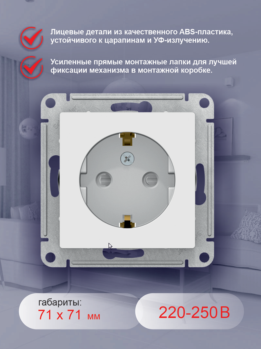 СохранитьРозетка ATLASDESIGN с заземлением со шторками 16А механизм белый интересное:
