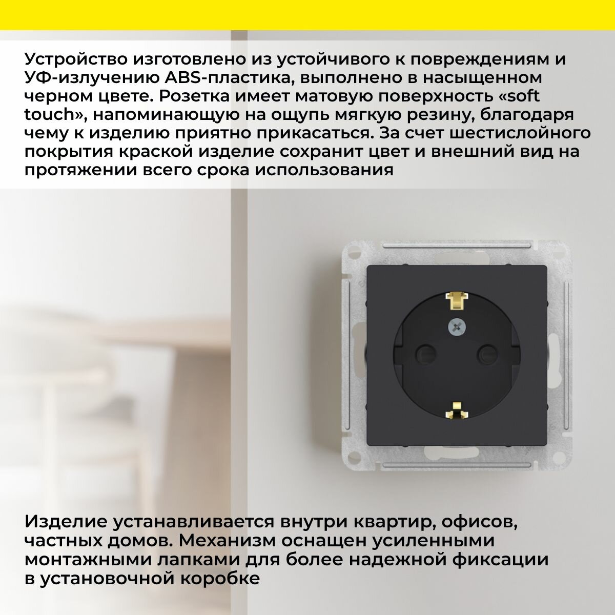 AtlasDesign Розетка с заземлением и защитными шторками , 16A, Базальт