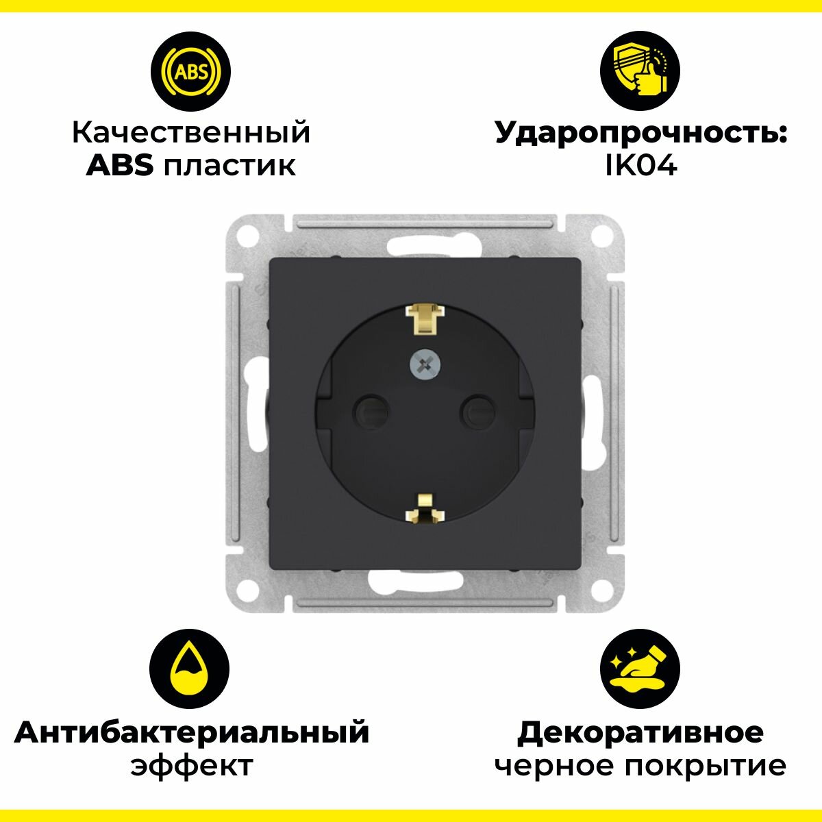 AtlasDesign Розетка с заземлением и защитными шторками , 16A, Базальт (комплект 5шт)