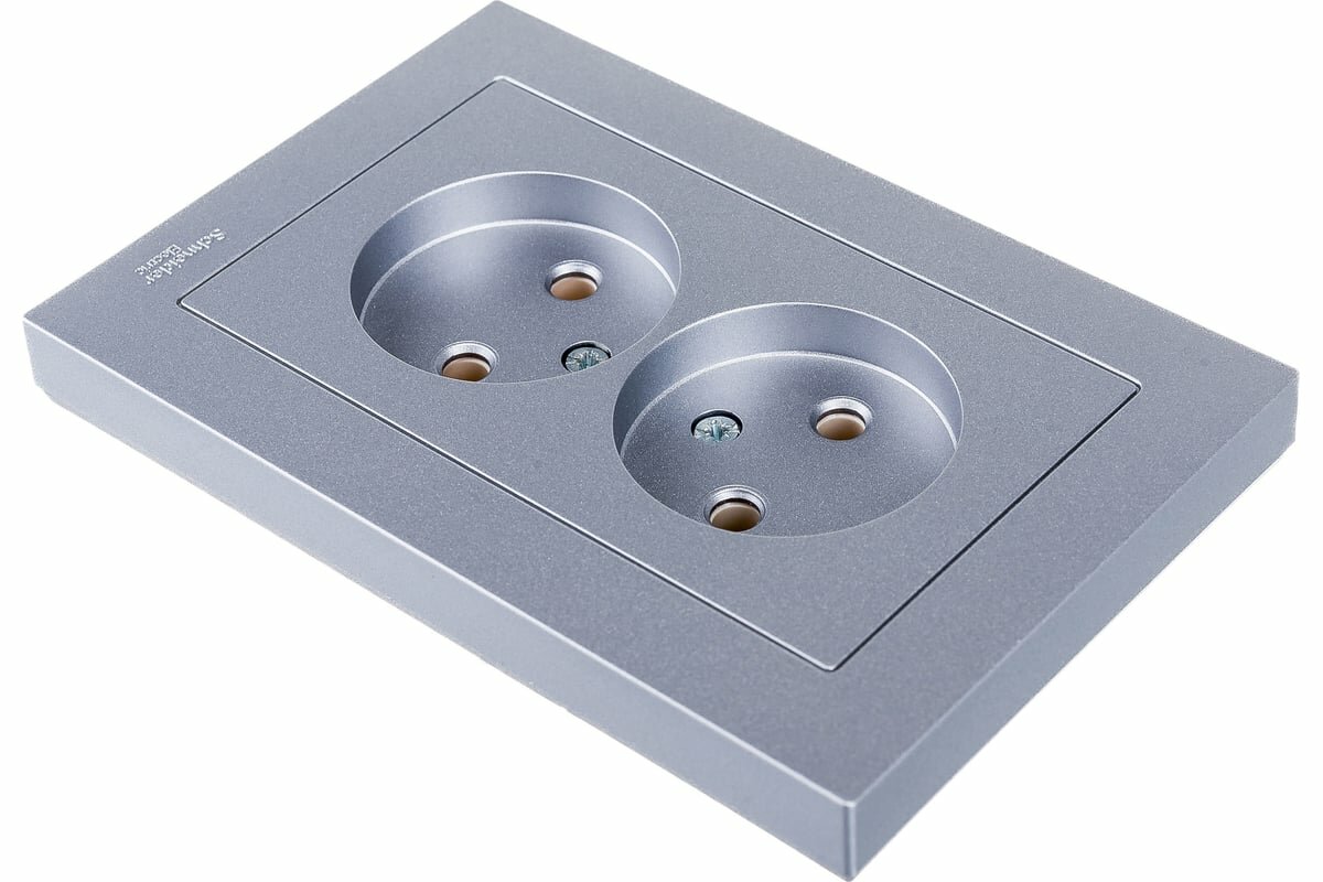 Розетка Schneider Electric AtlasDesign двойная без заземления алюминий (комплект из 2 шт)