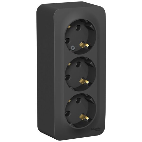 3шт. - Розетка BLANCA наружная трехпостовая, с заземлением, без шторок, с изолирующей пластиной, 16А, 250В, антрацит / Systeme Electric; арт. BLNRA010316; оригинал / - комплект 3шт
