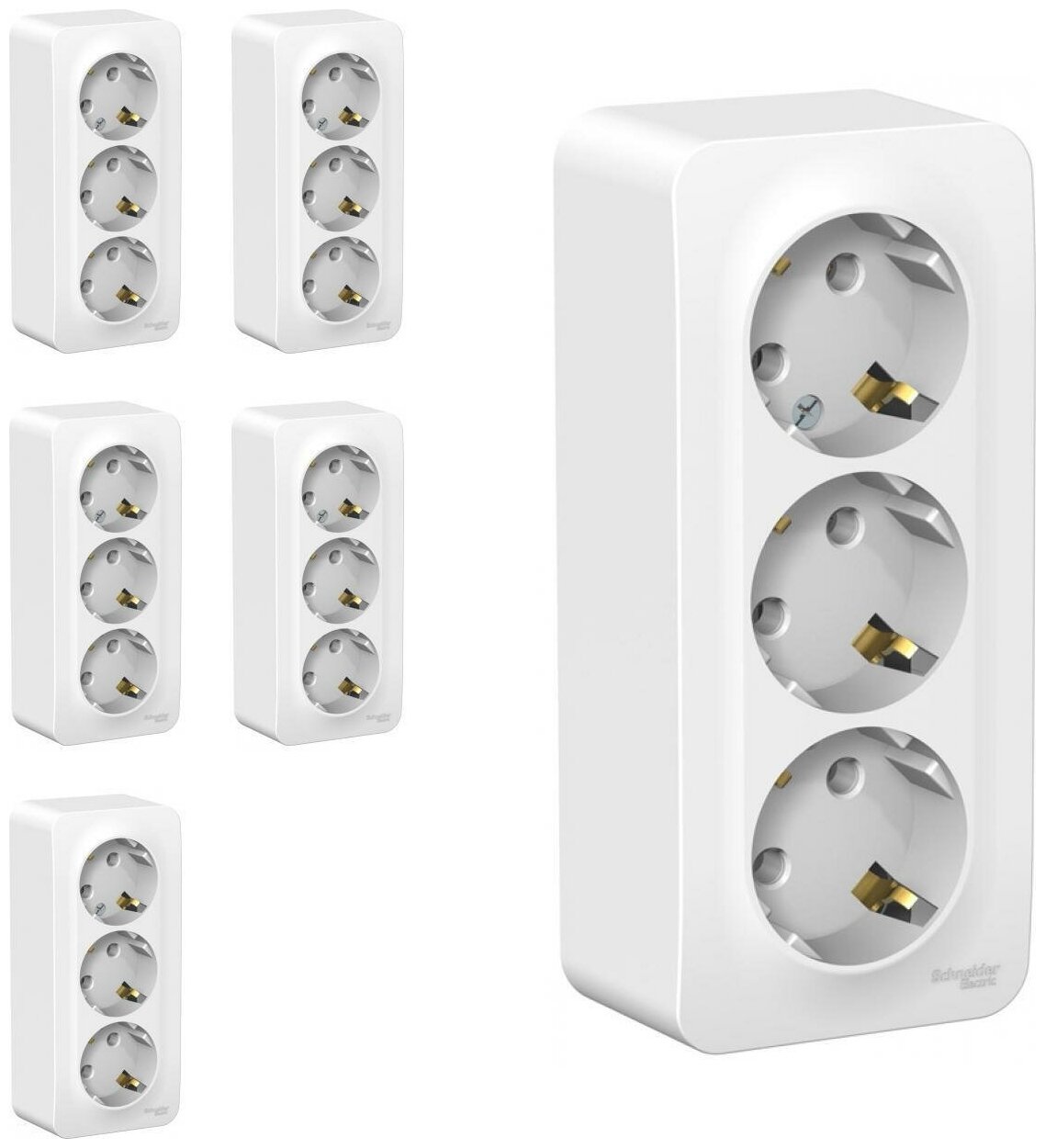 Розетка Schneider Electric Blanca тройная с заземлением без шторок белая для открытой проводки (комплект из 3 шт)
