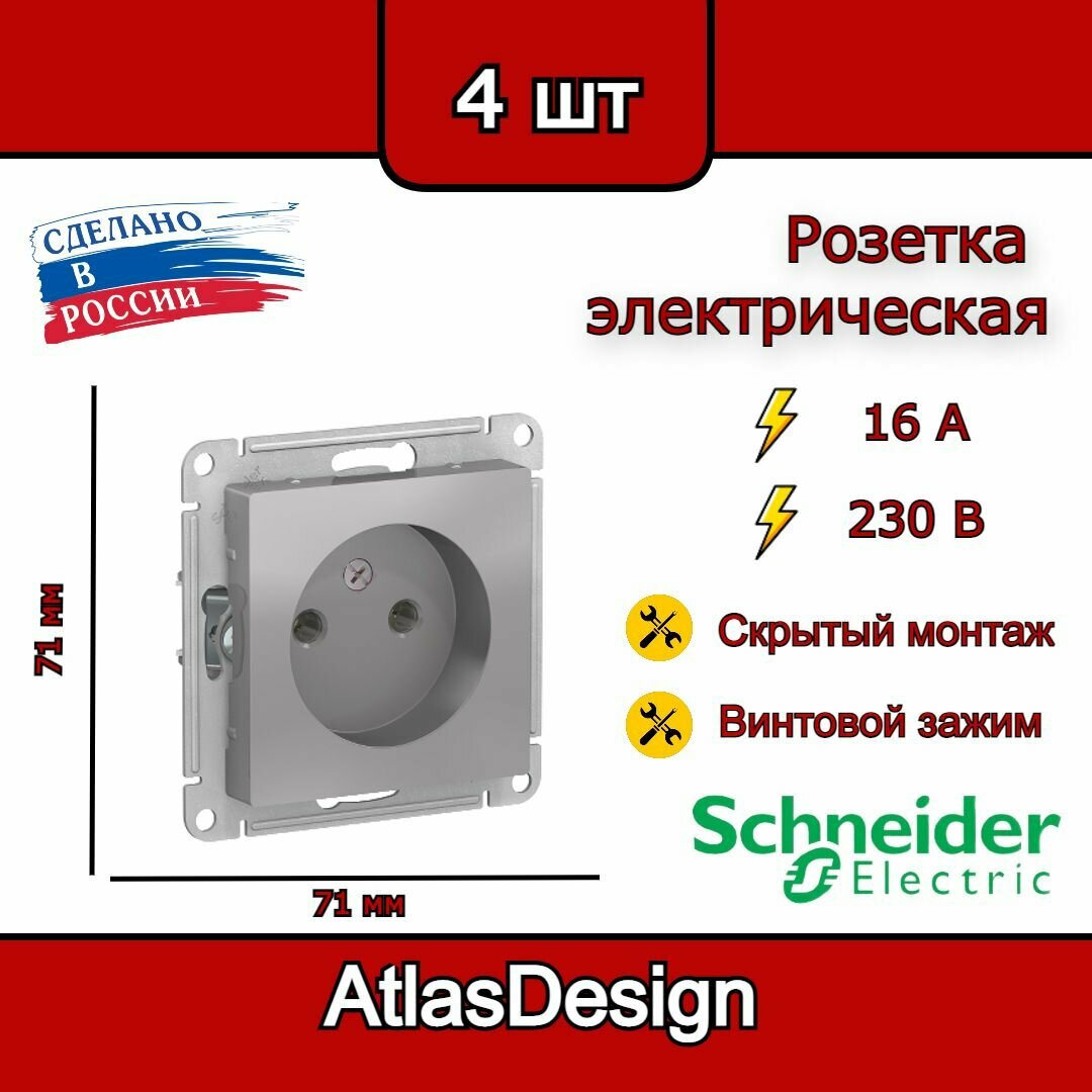 Розетка без заземления, алюминий Schneider Electric AtlasDesign (комплект 4шт)