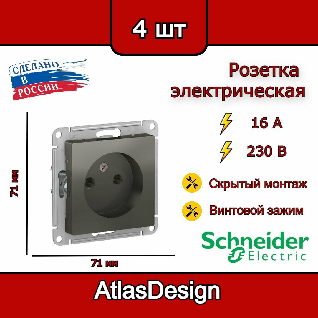 Розетка электрическая Systeme Electric Atlas Design без заземления, 16А Мокко ATN000641 - 4 шт.