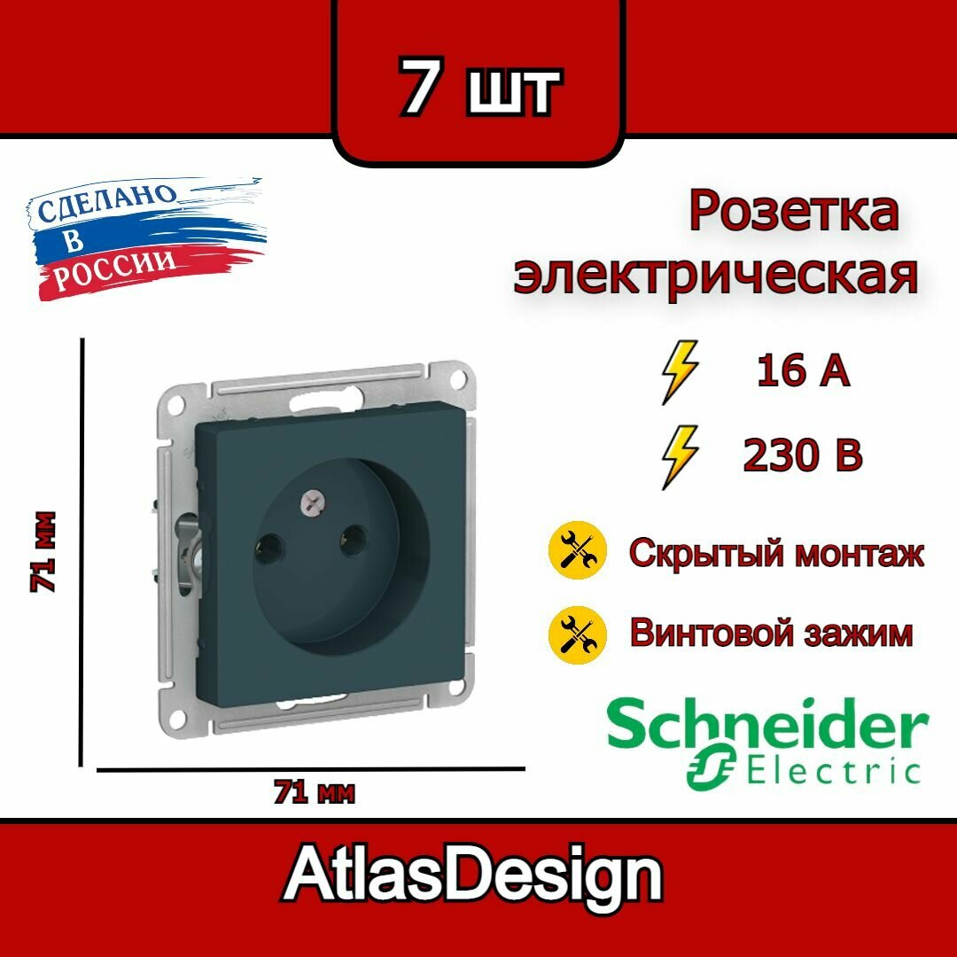Купить Розетка без заземления, изумруд Schneider Electric AtlasDesign (комплект 7шт)