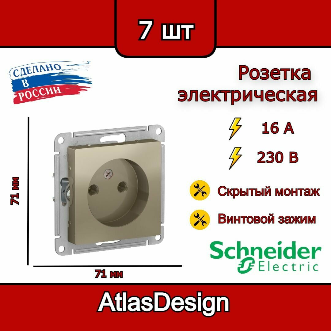 Купить Розетка без заземления, шампань Schneider Electric AtlasDesign (комплект 7шт)