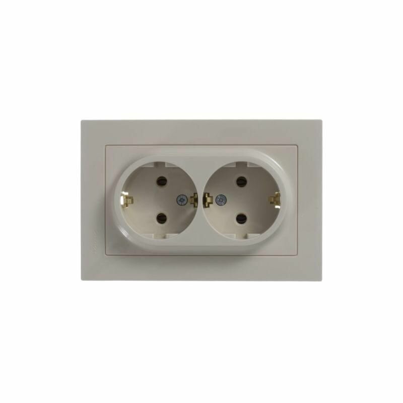 ATN001224 ATLASDESIGN розетка двойная с заземлением, 16А, в сборе, песочный