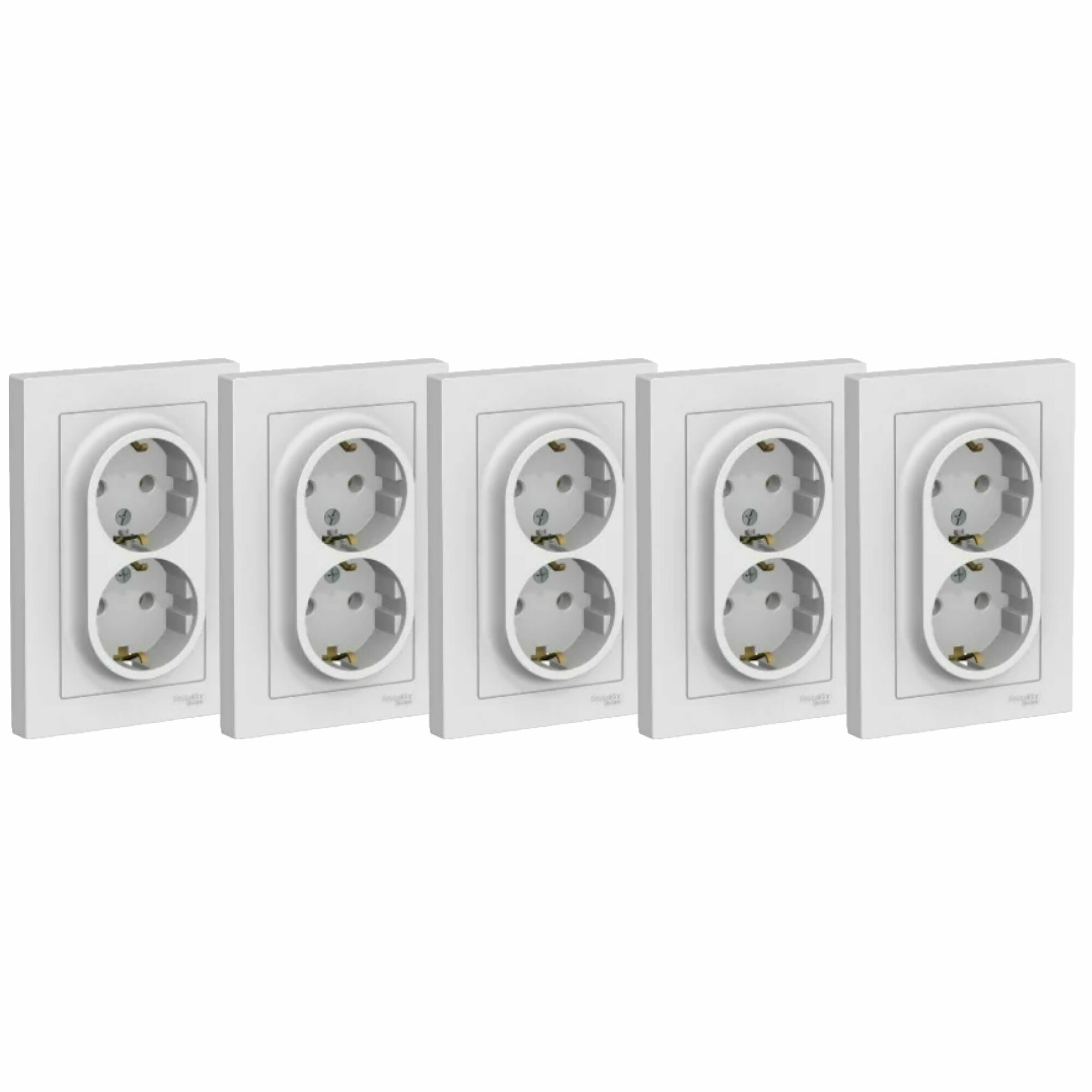 Розетка двойная белая, с заземлением,16А, в сборе, Schneider Electric AtlasDesign (комплект 5шт)