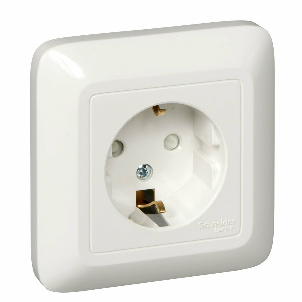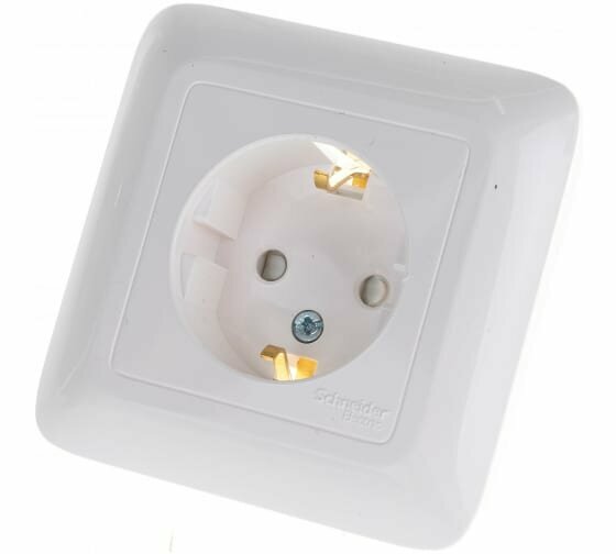 Розетка Schneider Electric Wessen Прима белая, внутренняя, с заземлением, с защитными шторками, в сборке, в оптовой упаковке, 16 А
