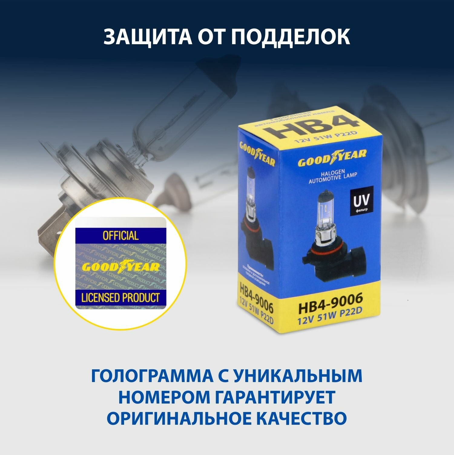 Лампа автомобильная галогенная Goodyear НB4 12V 51W P22d (блистер) GOODYEAR / арт. GY010041 - (1 шт)
