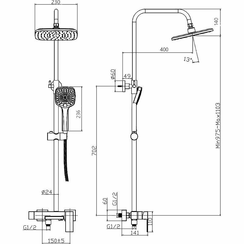 | Количество режимов верхнего душа | 1 |