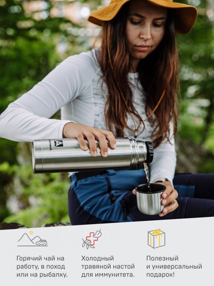 Термос 1л с ситечком для чая и кофе Арктика 101-1000С для рыбалки и туризма