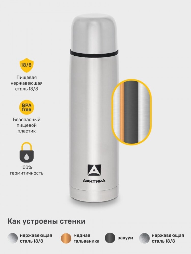 Арктика Термос классический с узким горлом 101-1000 для напитков 1л