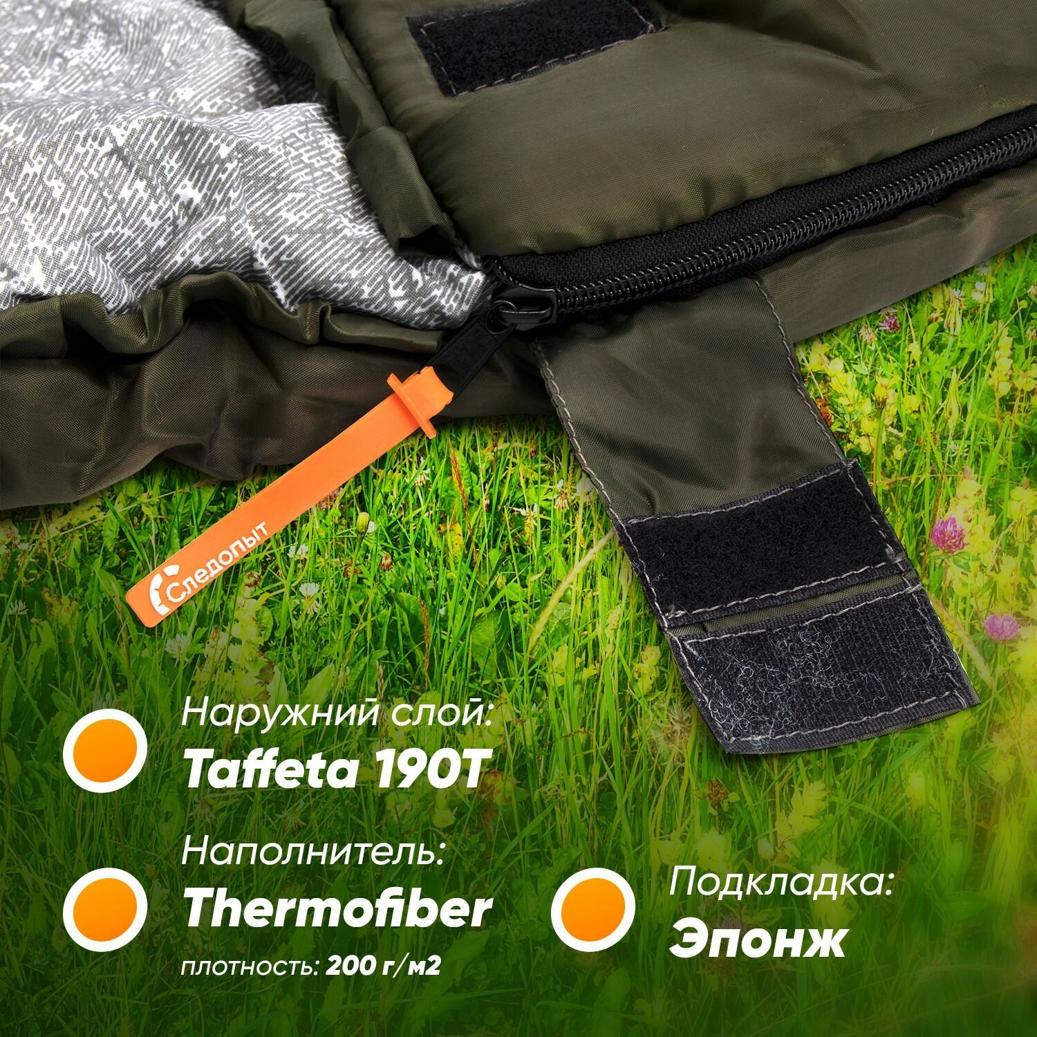 Спальный мешок туристический с подголовником "следопыт- Forester", 200+35х75 см., до +5С, 2х слойный, цв.хаки / Спальник туристический / Одеяло туристическое