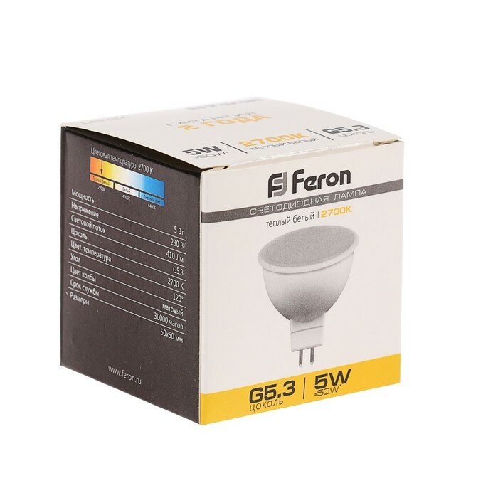 Лампа светодиодная LB-24 MR16 G5.3 5W 2700K, FERON 25127 (1 шт.)