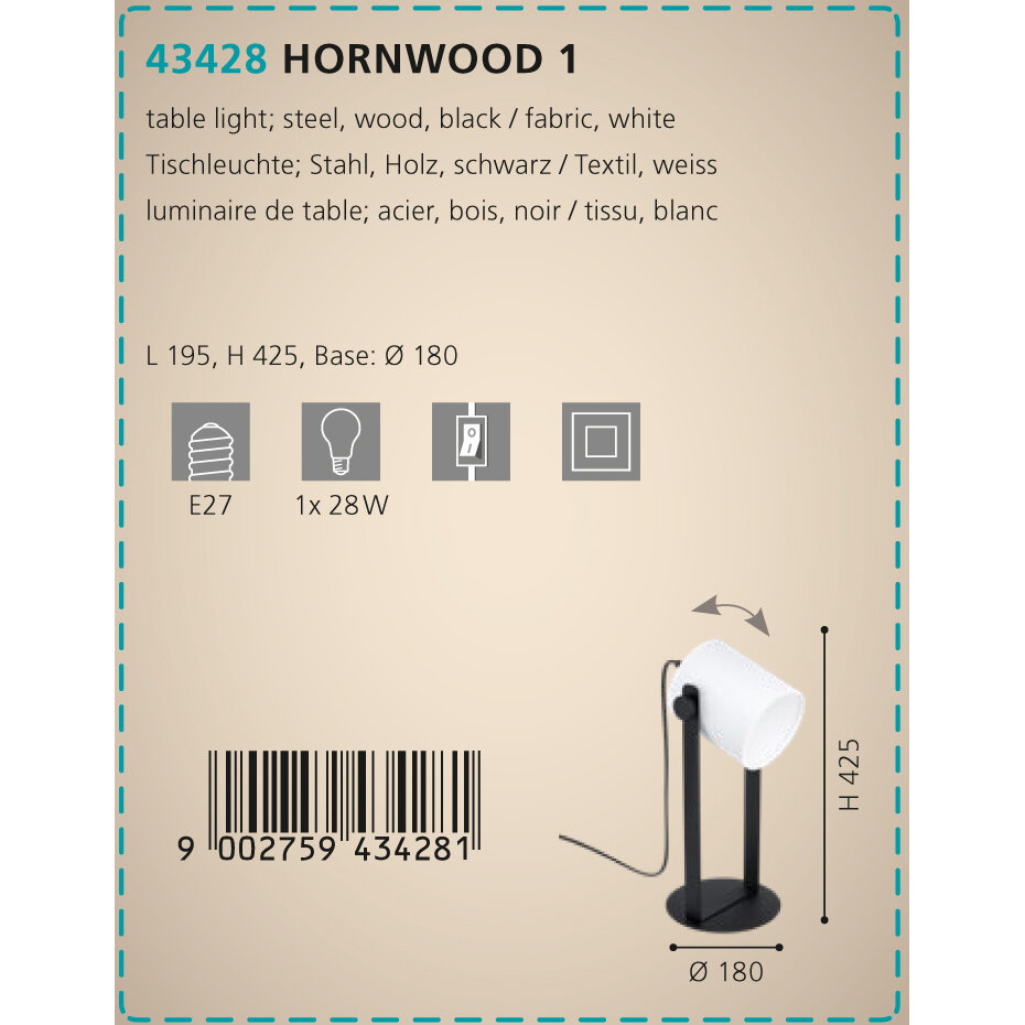 43428 Настольная лампа EGLO HORNWOOD 1 интересное: