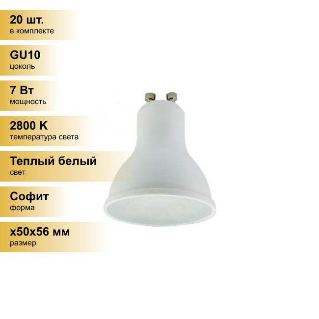 Сохранить(20 шт.) Светодиодная лампочка Ecola GU10 7W 2800K 2K 56x50 G1RW70ELC Теплый белый. Цоколь GU10 интересное: