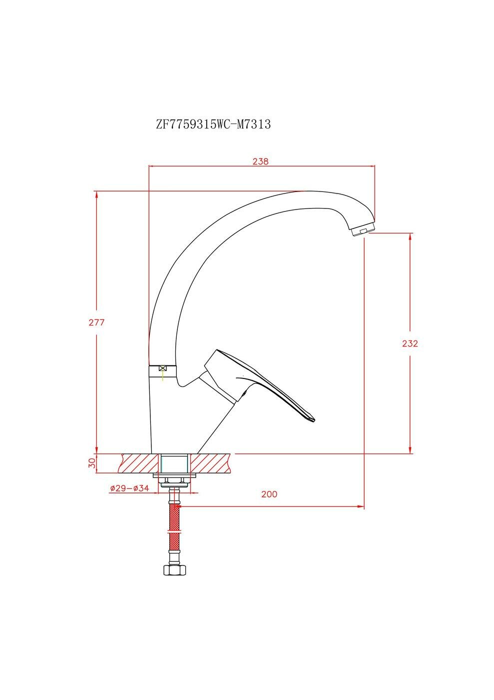 CRON Смеситель для кухни (Zn), гайка (Керамика) хром, CN77318-WC