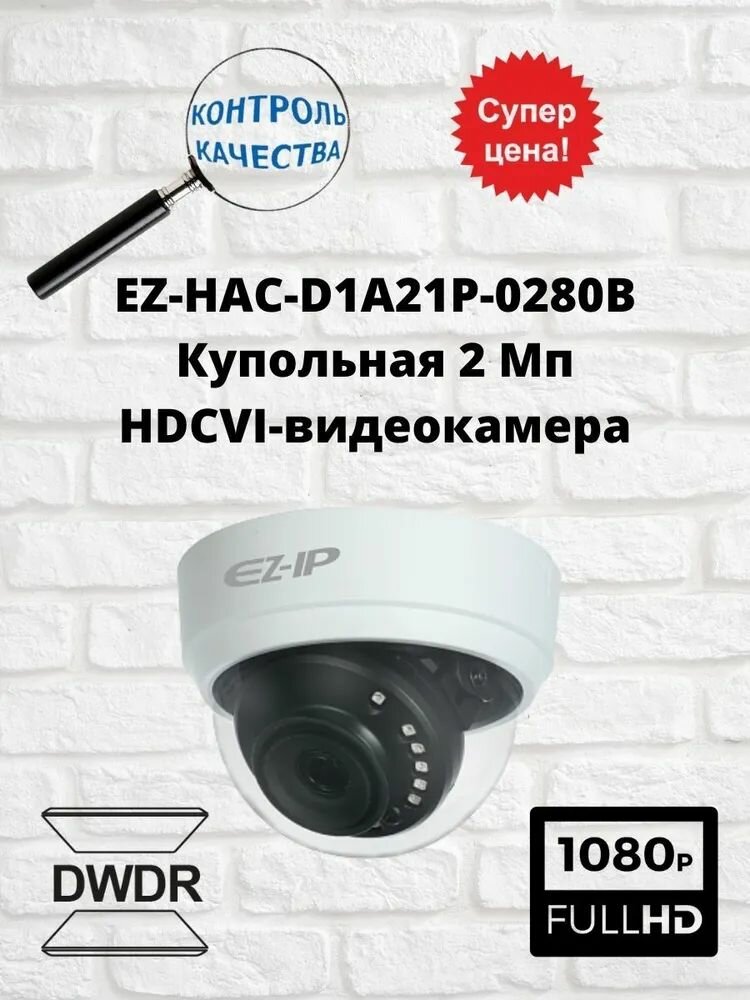 СохранитьEZ-IP EZ-HAC-D1A21P-0280B 2Мп 2,8 мм - камера видеонаблюдения HDCVI уличная, аналоговая купольная HDCVI-видеокамера для улицы с ИК-подсветкой, 1920x1080 Full HD, CMOS 1/2.7" интересное: