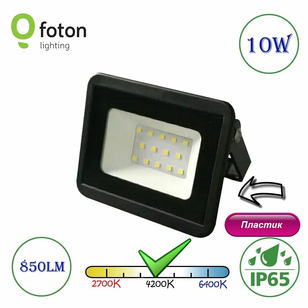 Прожектор светодиодный уличный 10W 4200K 850Lm ip 65 черный Plastic Foton Lighting интересное: