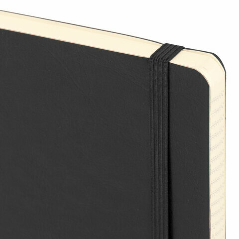 Блокнот в клетку с резинкой А5, 148x218 мм, 80 л, под кожу, черный, BRAUBERG Metropolis Ultra, 111021