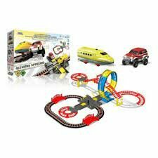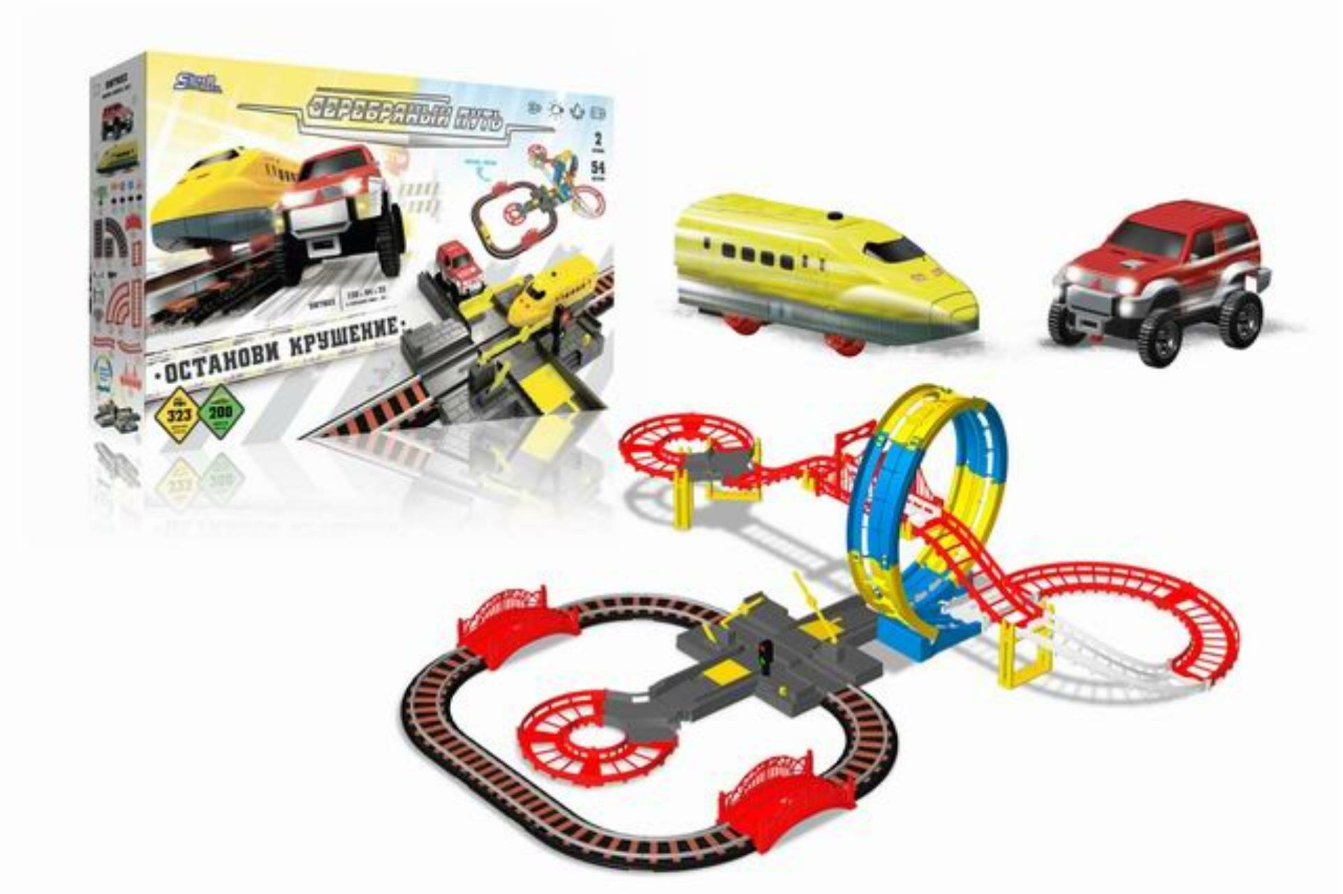 | Подробная комплектация | поезд, автомобиль, ж/д переезд, деревья, дорожные знаки, 2 ж/д моста, автомобильный мост, элемент "мёртвая петля", 2 разворотные площадки |