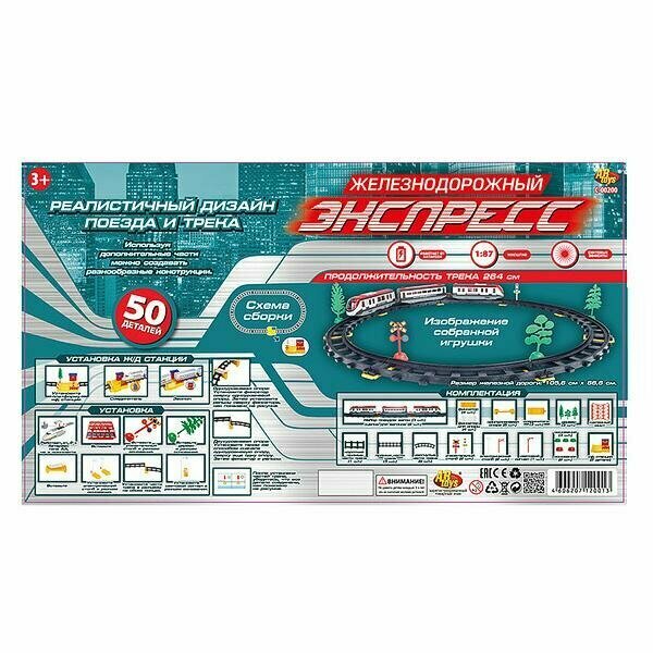 Железная дорога "Экспресс", 264 см, эл/мех, 50 деталей, в коробке интересное: