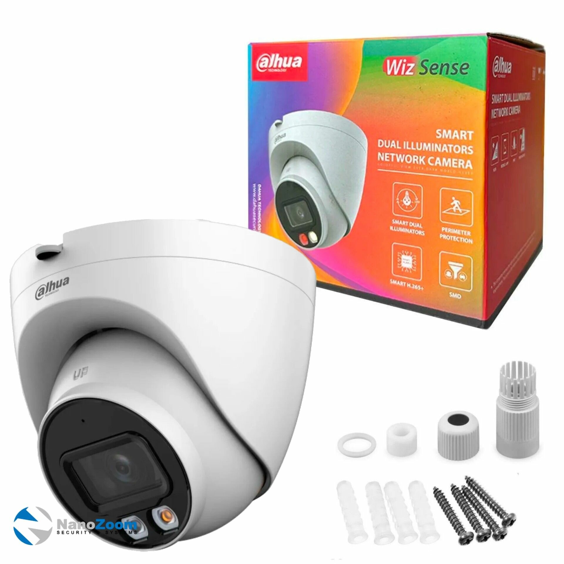DAHUA Видеонаблюдение DH-IPC-HDW2449TP-S-IL-0360B Уличная турельная IP-видеокамера Smart Dual Light с ИИ 4Мп, 1 2.9” CMOS, объектив 3.6мм,