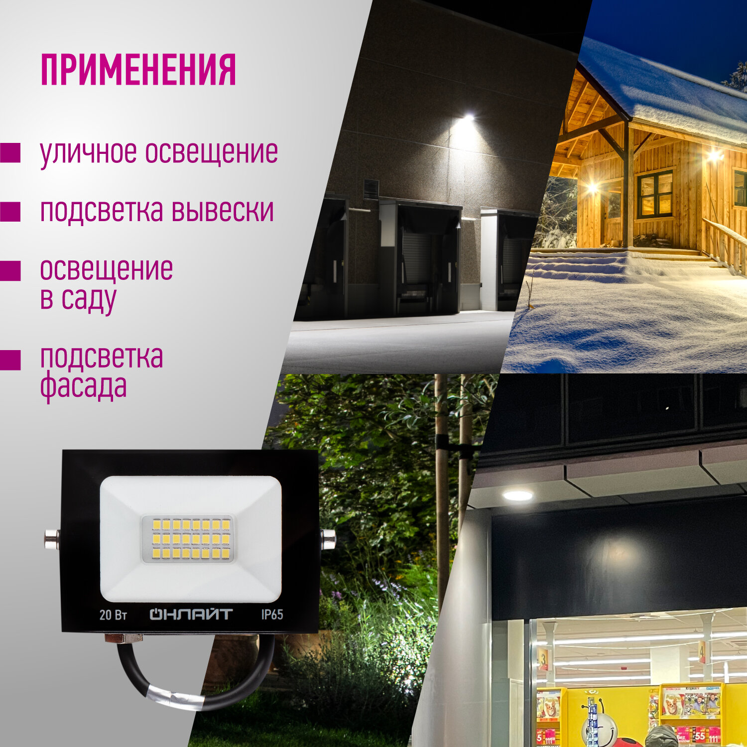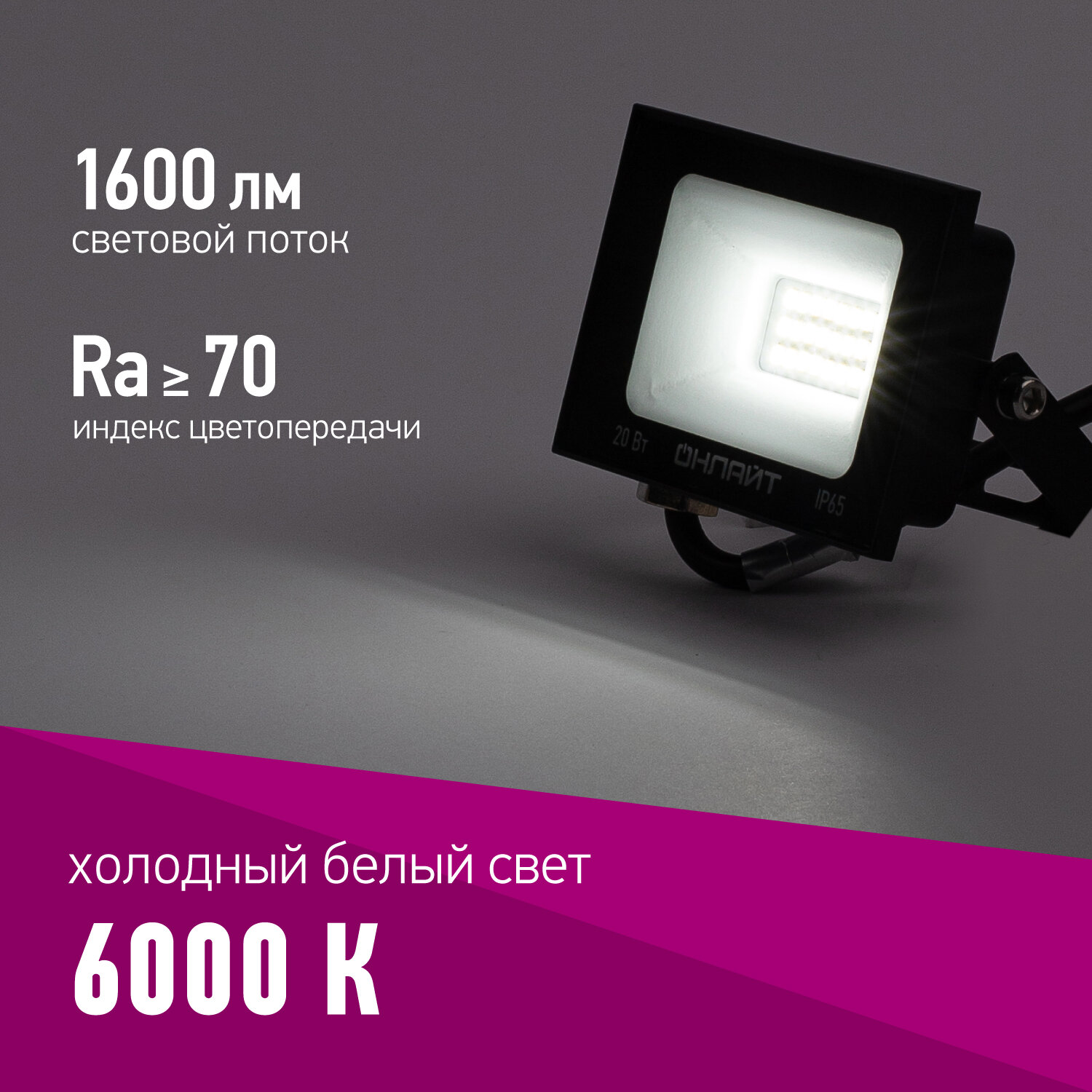 Купить Прожектор светодиодный онлайт 61 949, 20 Вт, холодного света 6000К, IP65, черный