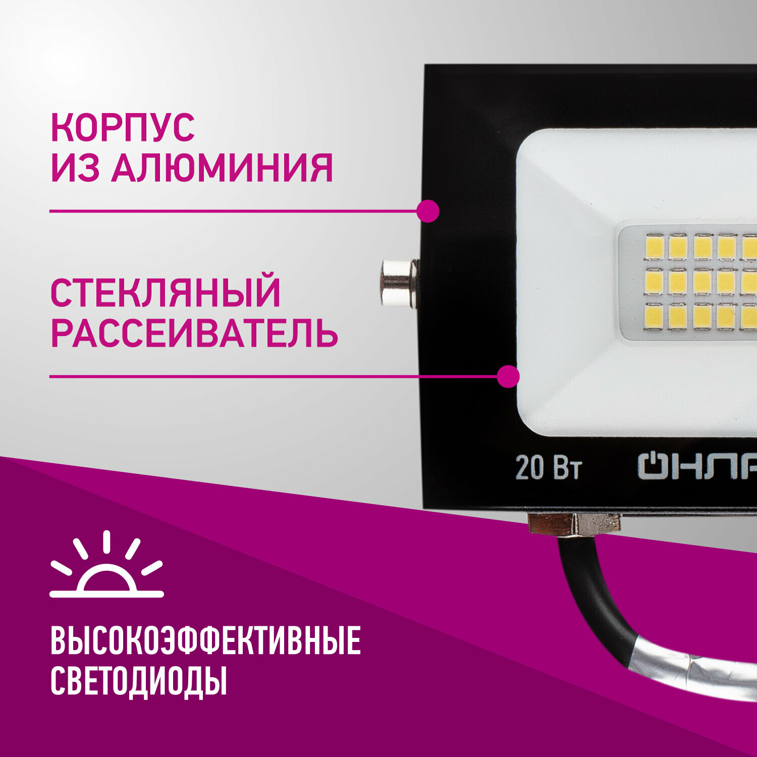 Прожектор светодиодный ДО-20w 6000К 1600Лм IP65 онлайт (61949 OFL)