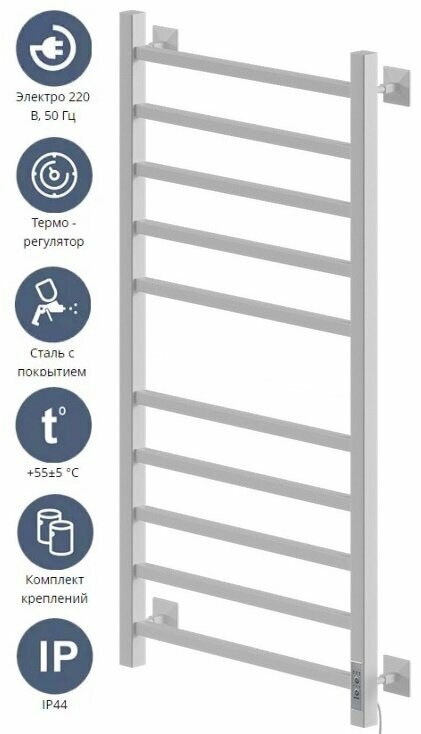 Ника Полотенцесушитель Ника STEP-1 100/50 RAL9016 белый матовый правый тэн, электрич.кабельный
