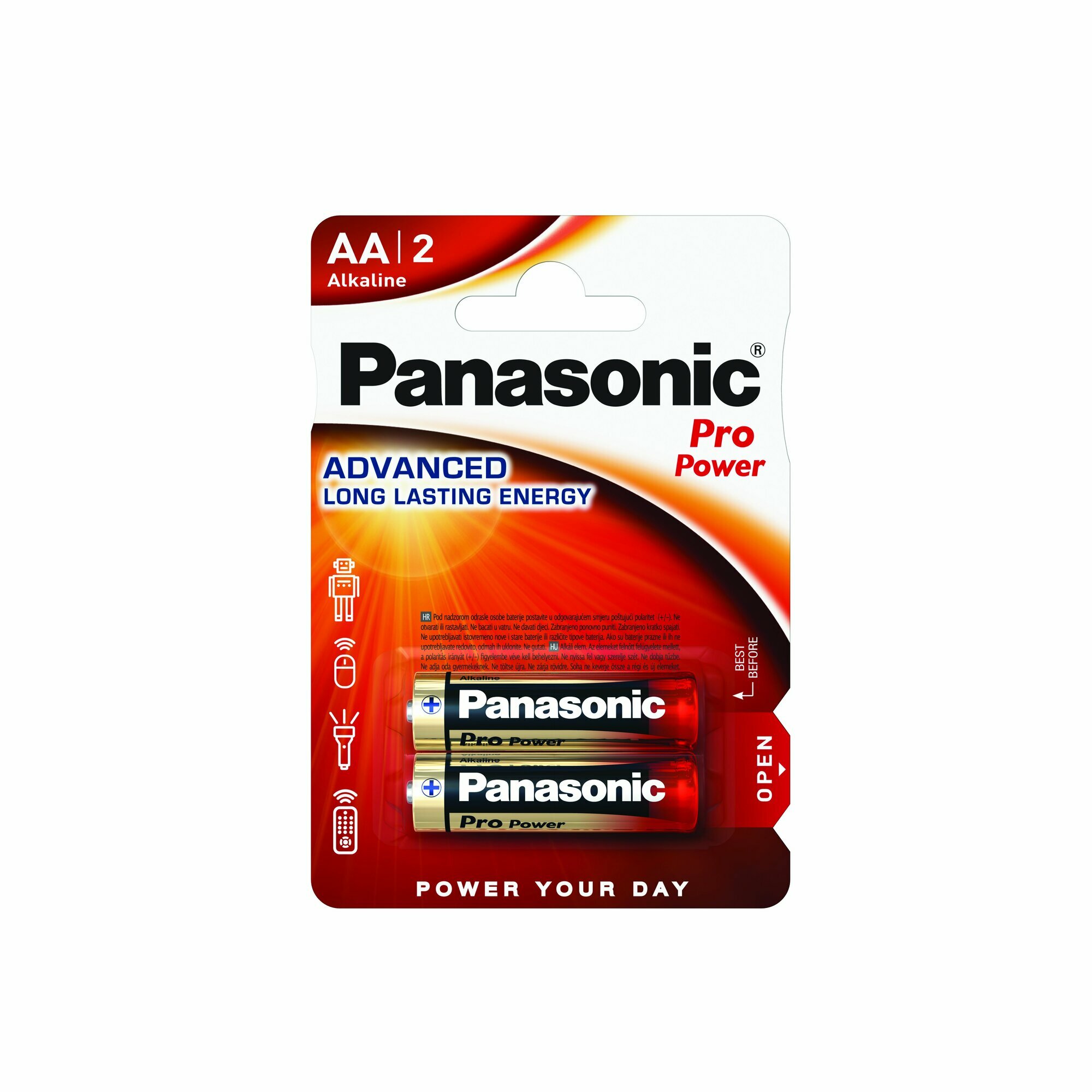 Батарейка Panasonic, АА (LR06, LR6), Pro Power, алкалиновая, 1.5 В, блистер, 2 шт, 7448