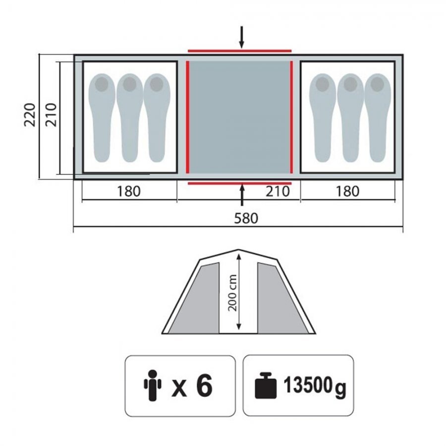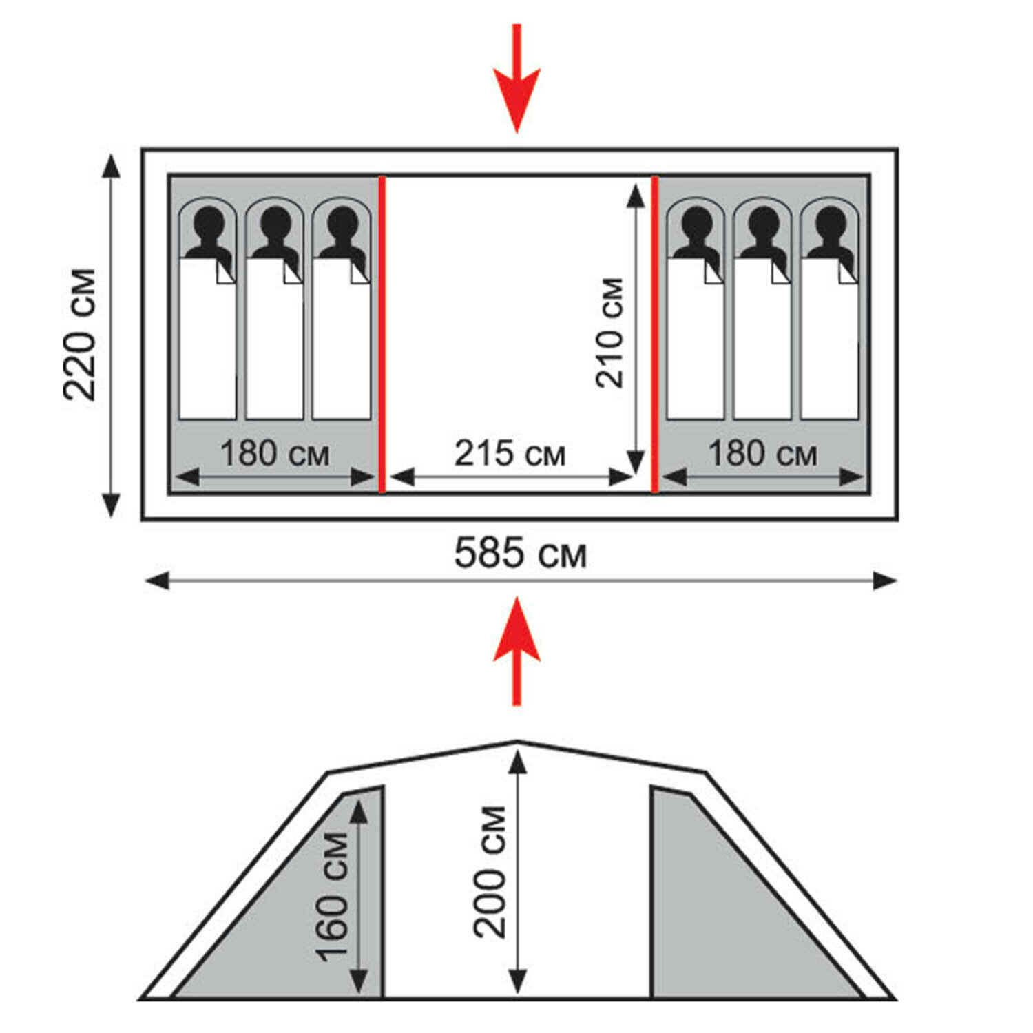 | Габариты внешней палатки(ДxШxВ) | 585x220x210 cм |