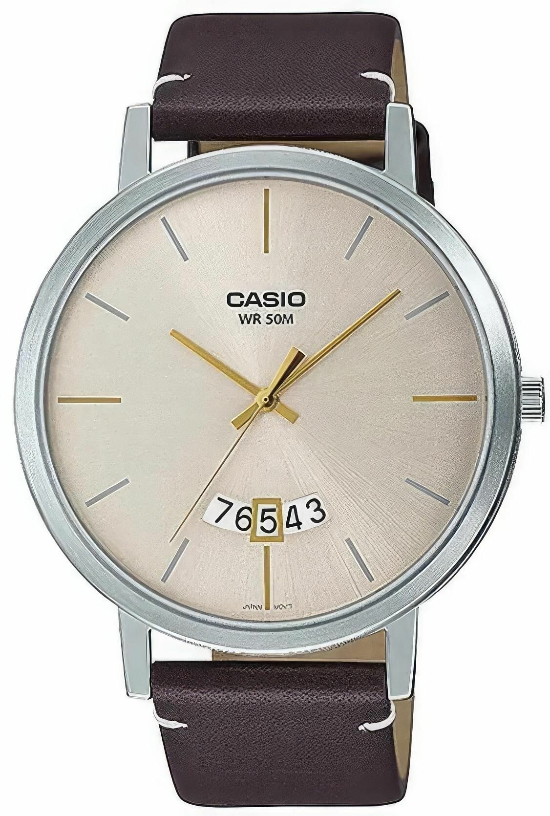 MTP-B100L-2E Casio наручные часы кварцевые WR50 (5 атм) мужские хром, коричневый отображение числа минеральное стекло