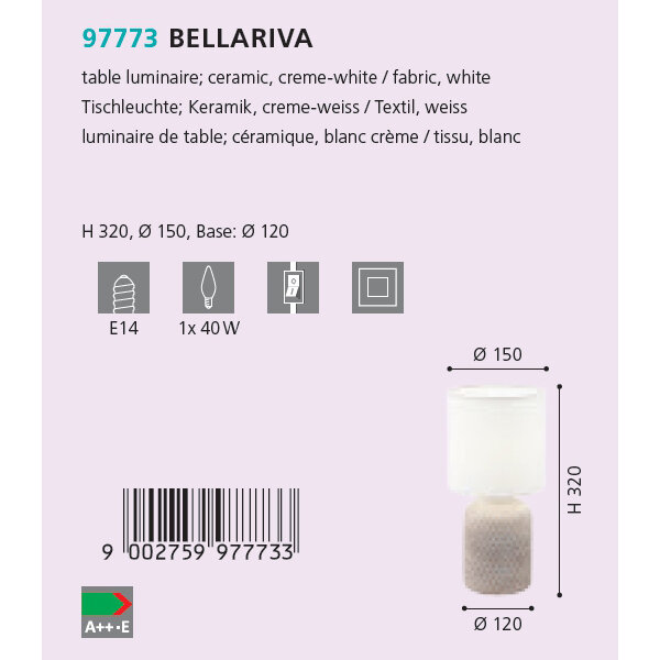 Купить Настольная лампа BELLARIVA 97773, 1х40W (E14), Ø150, H320, основа Ø120, керамика, кремово-белый/текс